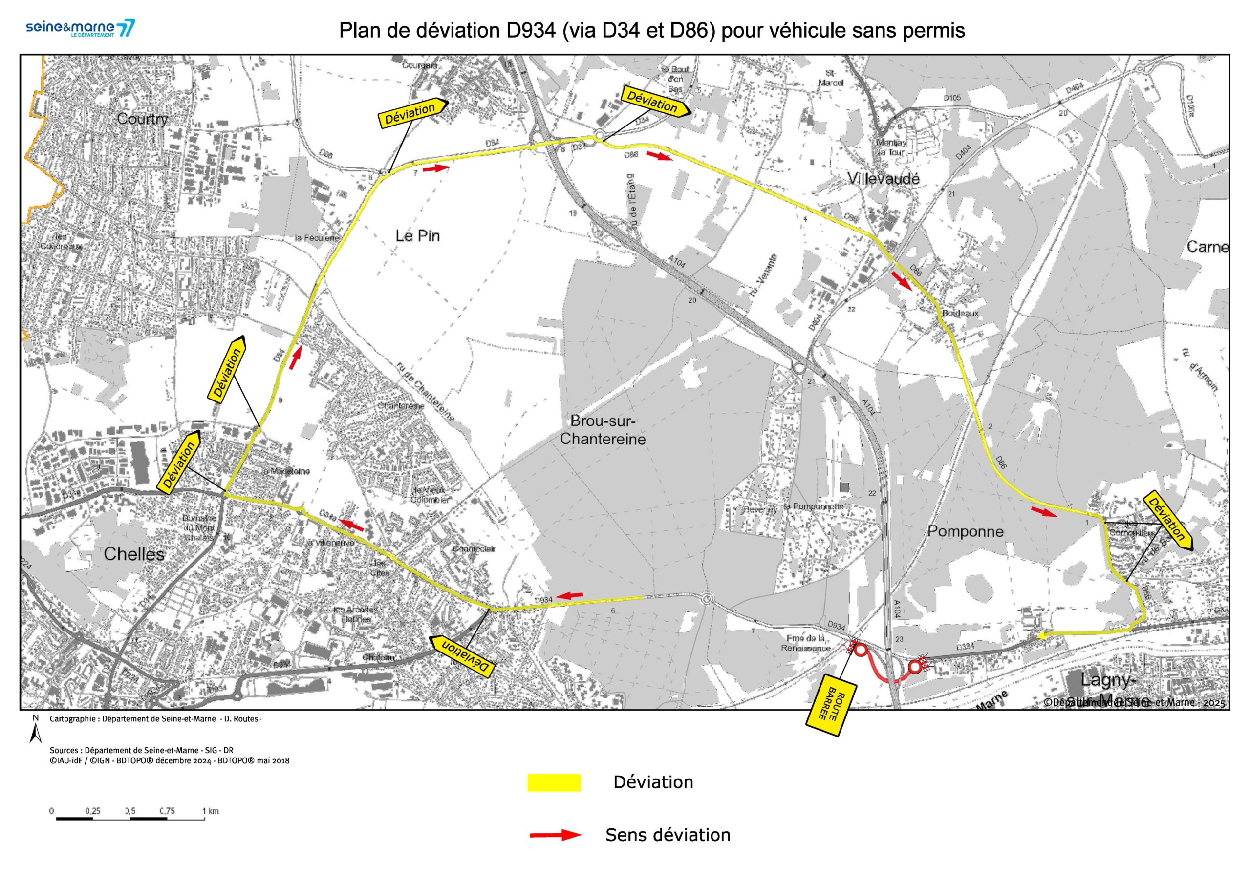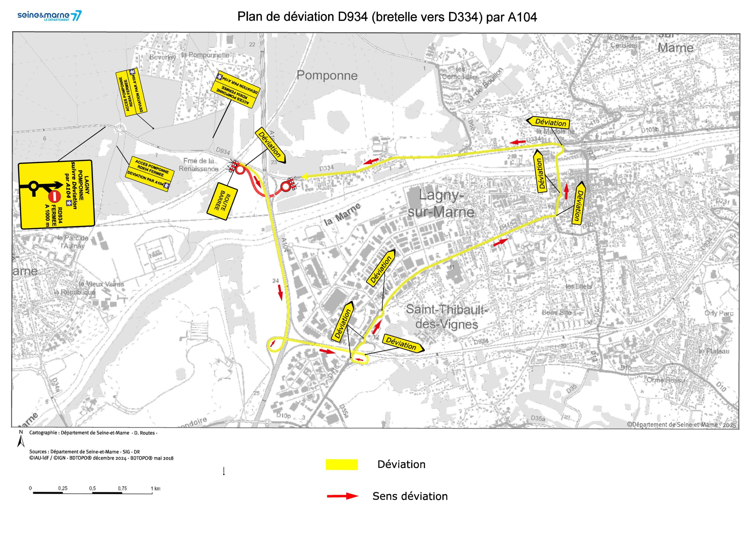 – Plan de déviation D934 (Bretelle D334) par A104