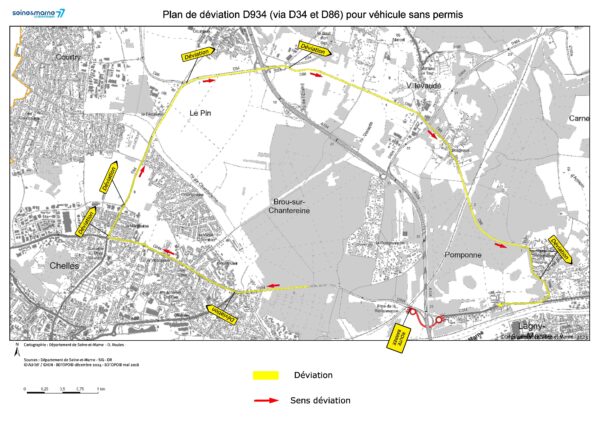 – Plan de déviation D934 (via D34 et D86) pour les véhicules sans permis